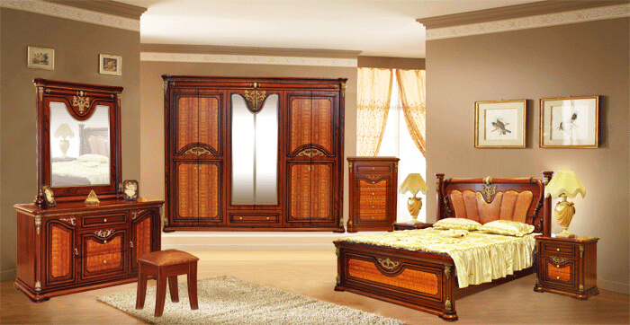- Takım açılımı 1 gardrop, 1 karyola, 1 aynalı şifonyer,1 çamaşırlık, 2 komodin den oluşmaktadır.